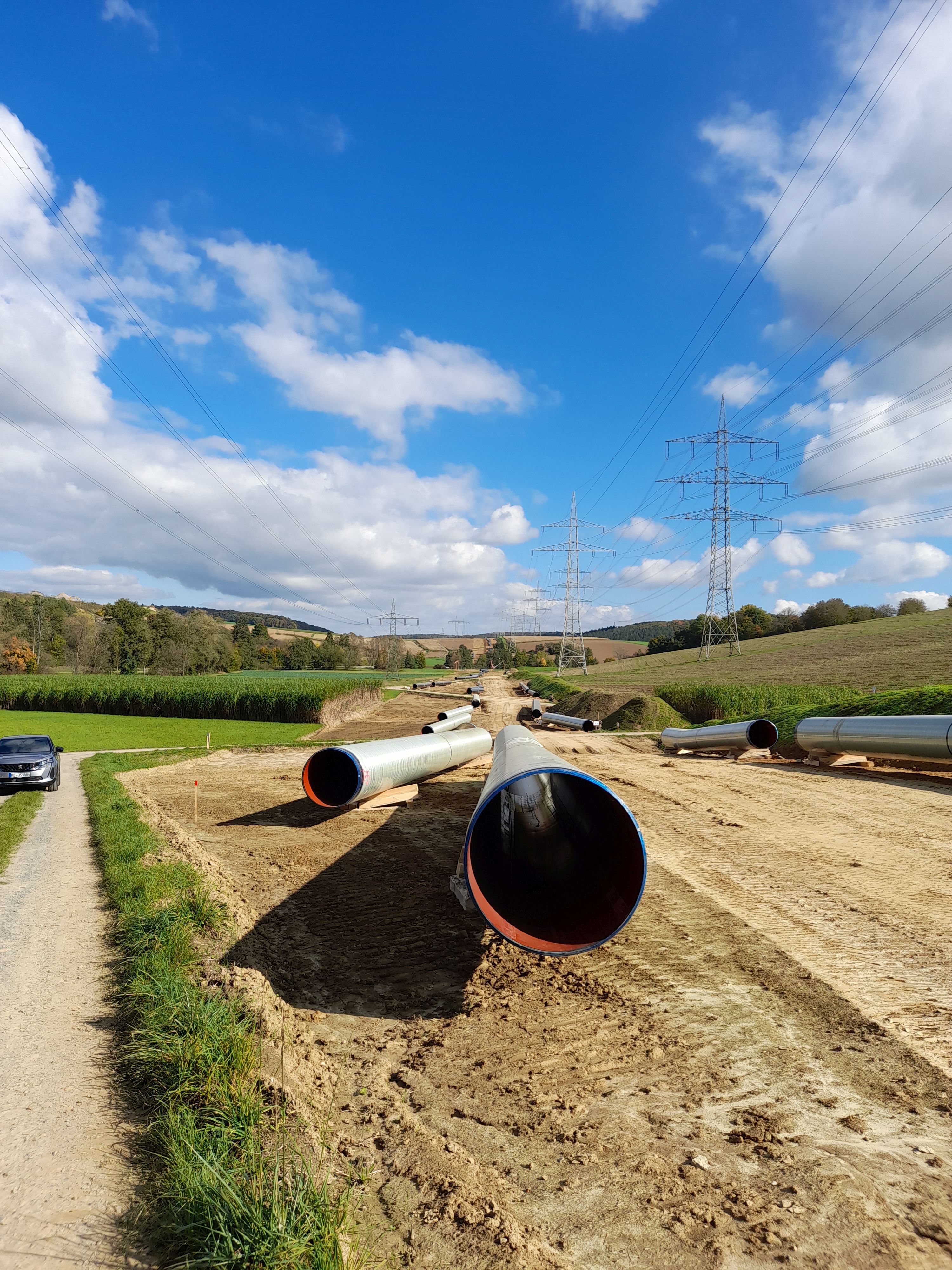 Der Bau der Erdgasleitung schreitet auch auf der Gemarkung Helmstadt-Bargen für alle sichtbar voran. Nachdem auf der Leitungstrasse der Oberboden für den gesamten Arbeitsbereich großflächig abgeschoben wurde hat die von der Terranets BW beauftragte Baufirma jetzt begonnen die Leitungsrohre entlang des Leitungsverlaufes zu legen. Die Rohre werden dann vor Ort verschweißt und dann anschließend mit Spezialkränen in den Boden verlegt. Im Bereich von Hüffenhardt haben diese Arbeiten bereits begonnen, die dann Stück für Stück in Richtung Helmstadt-Bargen vorrücken. Wann diese Arbeiten tatsächlich in Helmstadt-Bargen stattfinden hängt natürlich vom Baufortschritt ab. Richtig spannend wird`s natürlich wenn Straßen und Wege gekreuzt werden müssen. Auf der Landstraße zwischen Helmstadt und Flinsbach ist vorgesehen die Rohre unter der Straße durchzuschieben. Während der Bauarbeiten ist hier mit einer zumindest halbseitigen Sperrung zu rechnen. Der auch von vielen Radfahrern gerne genutzte Gemeindeverbindungsweg zwischen Helmstadt und Flinsbach wird während der Bauarbeiten komplett gesperrt werden müssen, da die Rohrverlegung hier in offener Bauweise erfolgt. Nach dem derzeitigen Stand der Bauarbeiten wird die endgültige Wiederherstellung des Weges erst im Frühjahr 2026 erfolgen.
